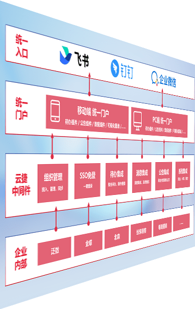 对协作平台提供支持服务,,,,支持企业应用与协作平台对接,,,,包含组织同步、、、、消息集成、、、待办集成等。。。支持目前主流的协作平台:钉钉、、企微和飞书。。。