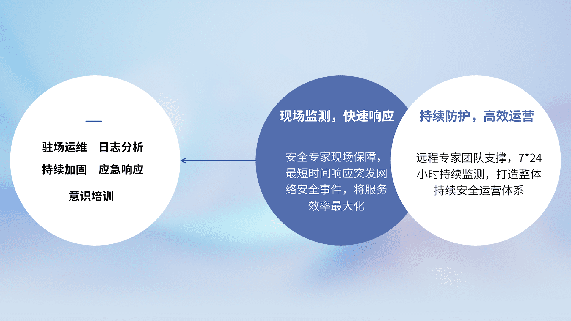 针对客户行业特性,,,提供专属的一站式安全管理服务,,,帮助客户全面感知网络空间威胁,,,,通过安全专家的线上、、、、线下防护支持,,实现风险闭环,,将安全保障常态化,,为客户打造常态化安全运维运营服务。。。